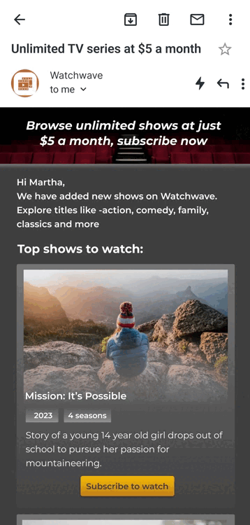Traditional promotional emails redirect users to external sites, increasing friction and drop-offs.